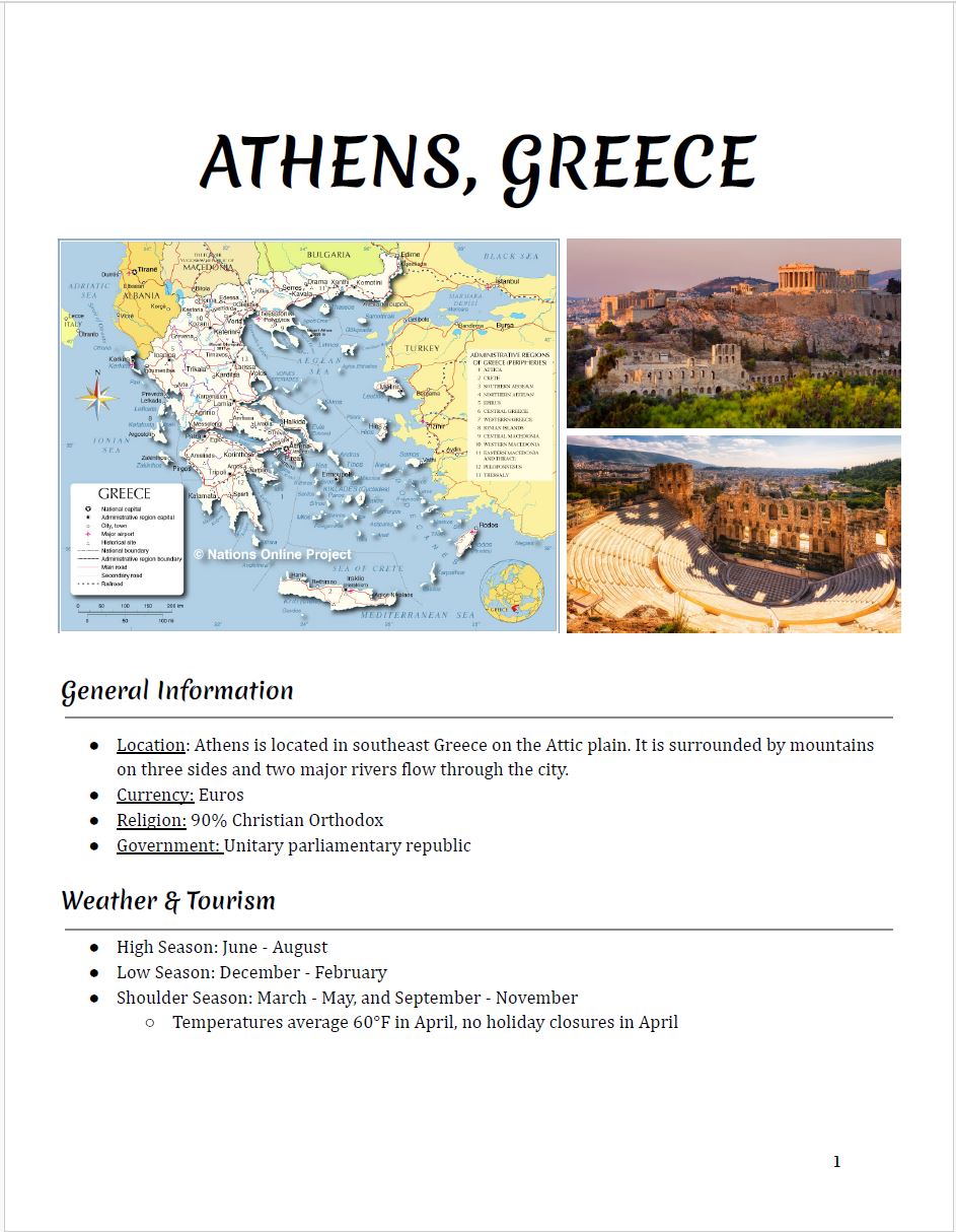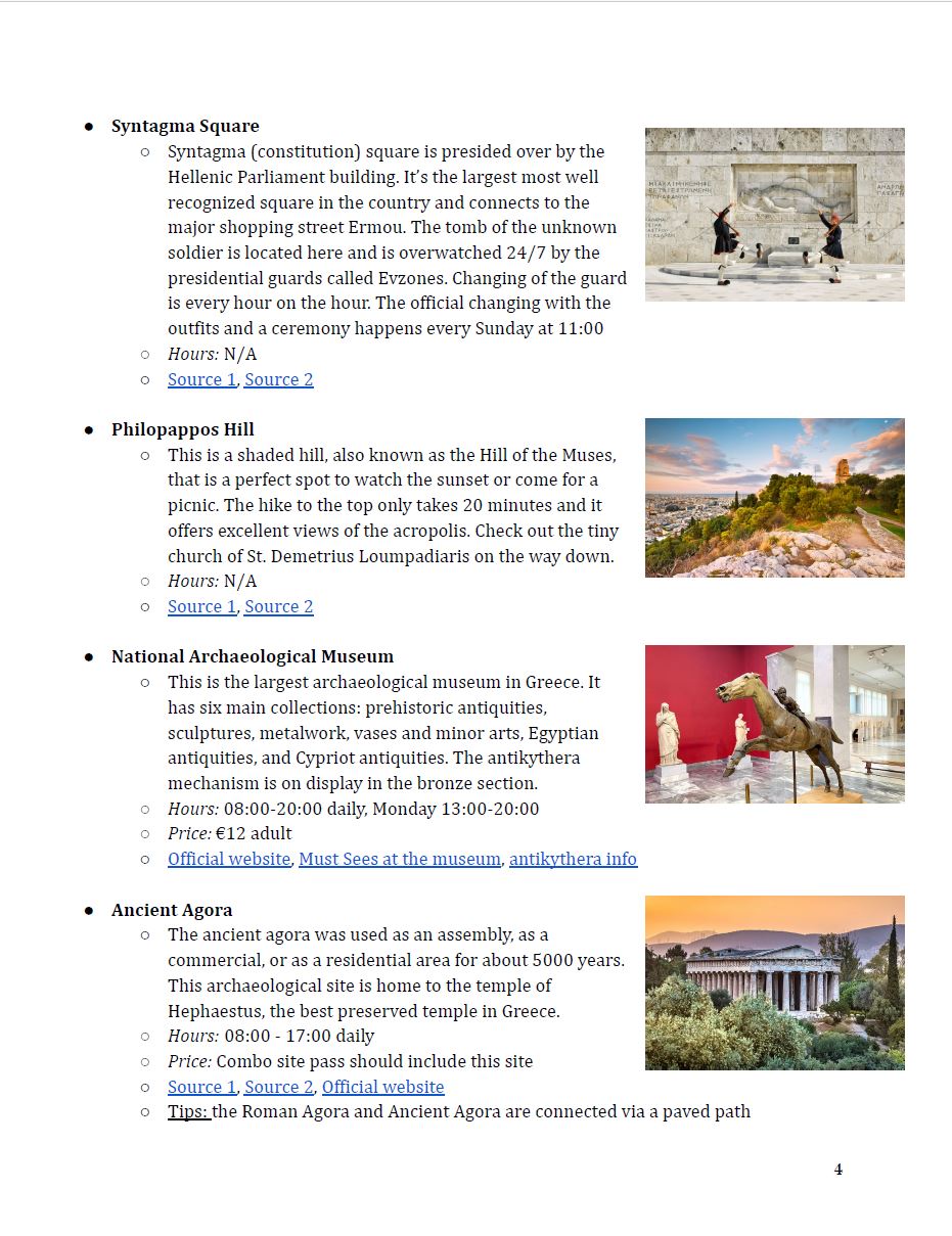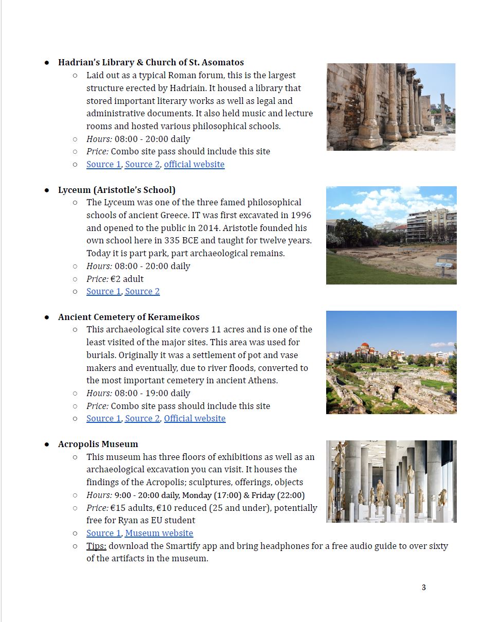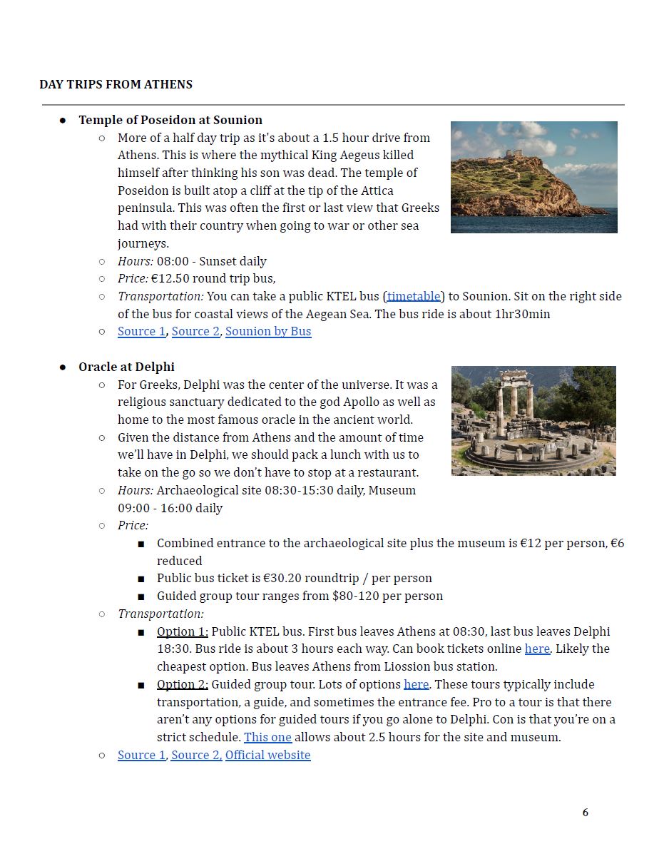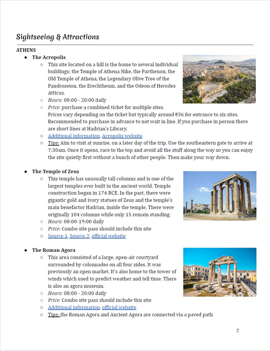 I have a template that I use for all of my travel research which incorporates all of the information discussed above. The only thing that changes is how in-depth my research is. The length of my trip usually determines how thorough I am in my destination specific research. Typically I do more research for shorter trips and a bit less for longer trips.