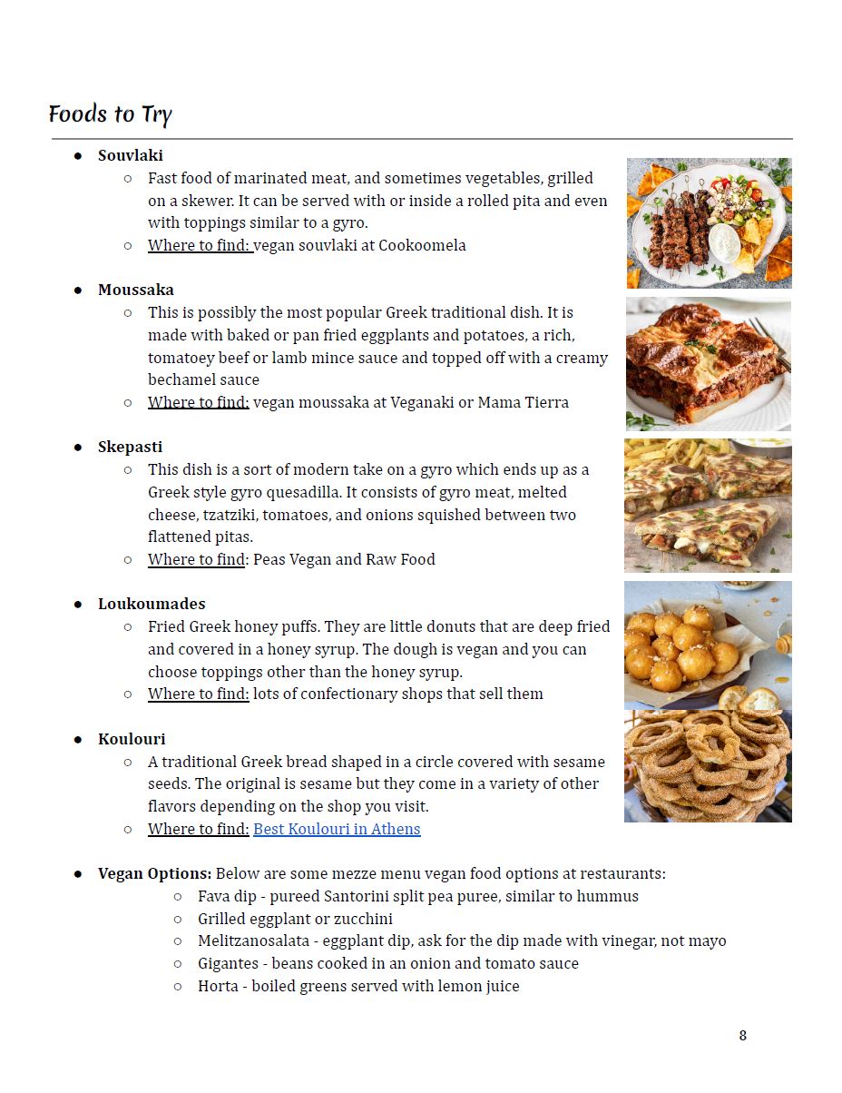 Regardless of how extensively you want to conduct your research, I would recommend looking into the following topics to at least familiarize yourself. I found it very useful to have all of this research already compiled and completed prior to my trip. It helped me plan out other aspects such as the route and timeline. But it was also super useful to reference prior to entering a new city or country. I could pretty quickly make a plan for the day by looking at what I had already researched.