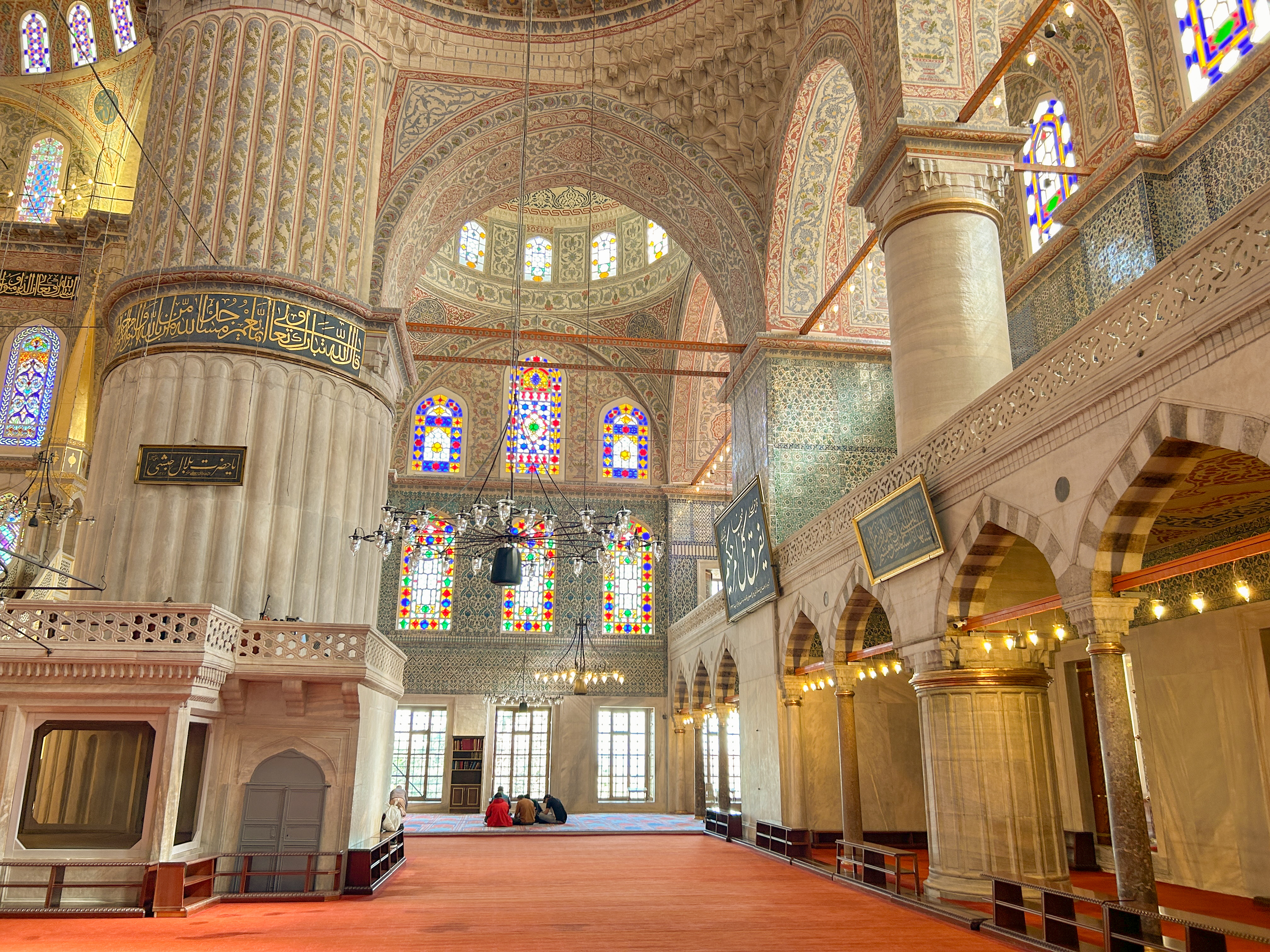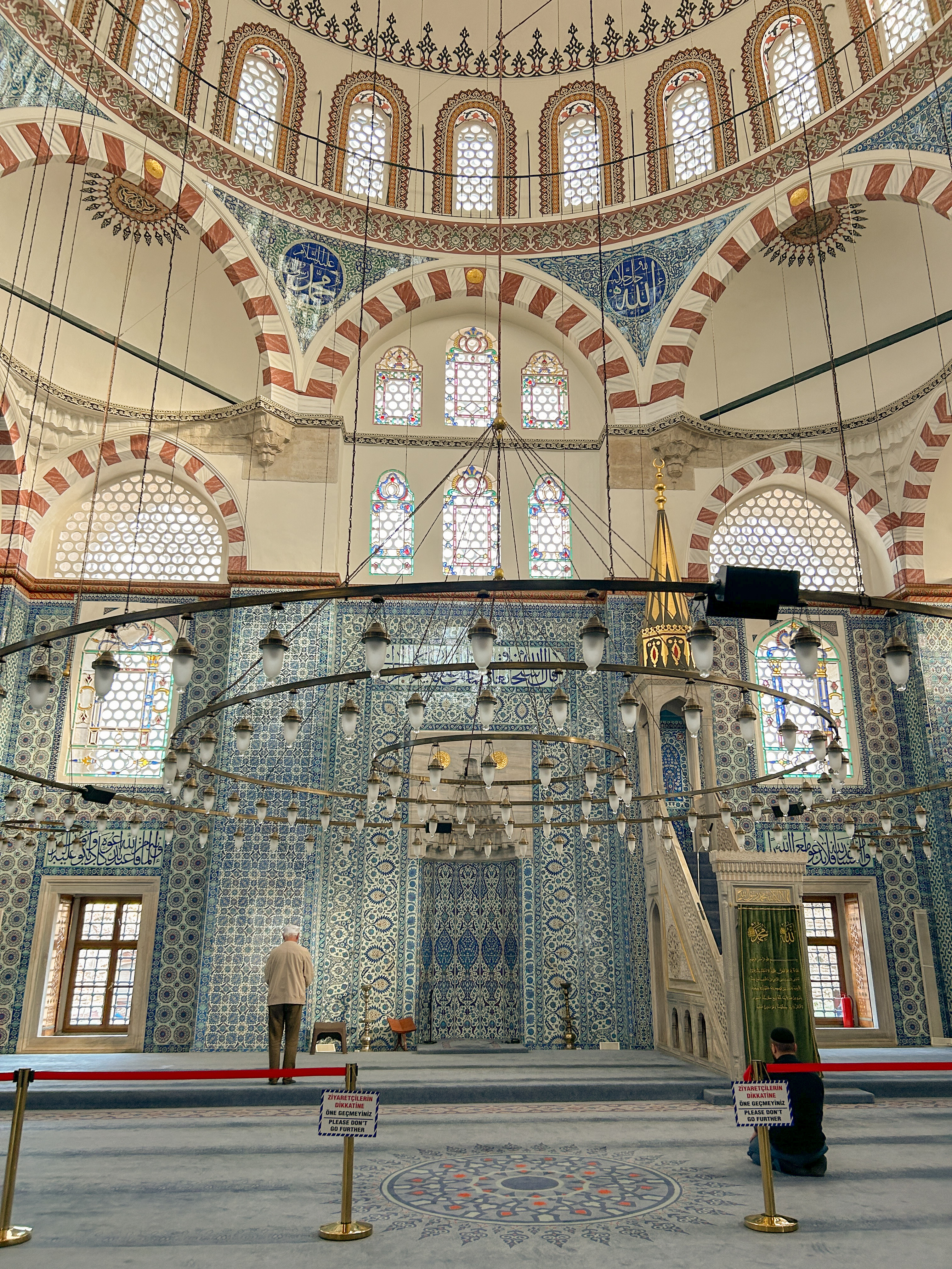 I found the mosques to all be extremely welcoming towards non-Muslim visitors. The tourism sector in Istanbul is very built up so it makes sense, but even so, everyone who worked or volunteered at the mosques was so kind. In the most popular mosques, there were lines on the floor or gates that showed where tourists should not cross. There were often separate tourist entrances. Even in some of the mosques I visited that were in neighborhoods and not frequented by tourists, I felt extremely welcome. One morning I visited a mosque and wasn’t sure if I was able to go in but the men who were there cleaning happily led us inside and even allowed us to the upper floor to admire the mosque. I appreciated their willingness to let outsiders admire and learn about their religion and culture.