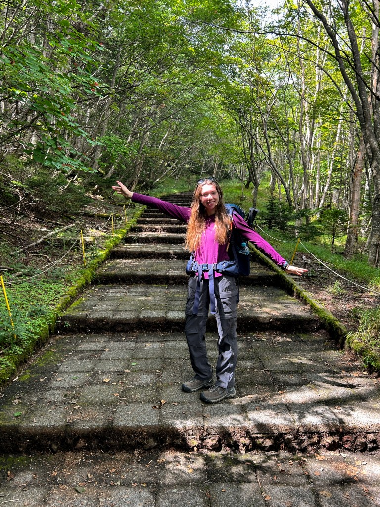 It was around 12:30 so we decided to have a small lunch, some peanut butter and jelly sandwiches we brought, before starting our climb. Once we started walking towards the trail head, we had to go through a checkpoint. Here we had to pay a ¥1,000 donation for the conservation of the mountain. It’s advertised as a donation but treated like an entrance fee. Either way I was happy to pay to help preserve the mountain. We also had to fill out a registration form with our climbing plan and our contact information. Lastly, there was someone who asked to make sure we had all of the necessary equipment for hiking up (headlamp, food, warm clothes, etc.). After this, we were able to start our ascent!