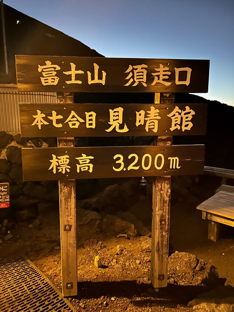 We made it to the new Station 6 around 14:30 and took a short break. Even from this point there was a pretty nice view as you are almost to the top of the tree line. You can see some of the lakes below and the land, given there’s good weather. After a short break, we decided to trek on. From here on out the trail wavers between having trees and being rocky and devoid of large plants. We stopped at the original 6th Station for another break. I knew that our mountain hut was at Station 7, so once we hit the original 6th Station, I was feeling pretty good. The sun was just about to go behind Mount Fuji for the day and the sky was really clear. We were also high enough that we could finally see the summit of the mountain in the distance. The signs said that Station 7 was about 1.2km away.