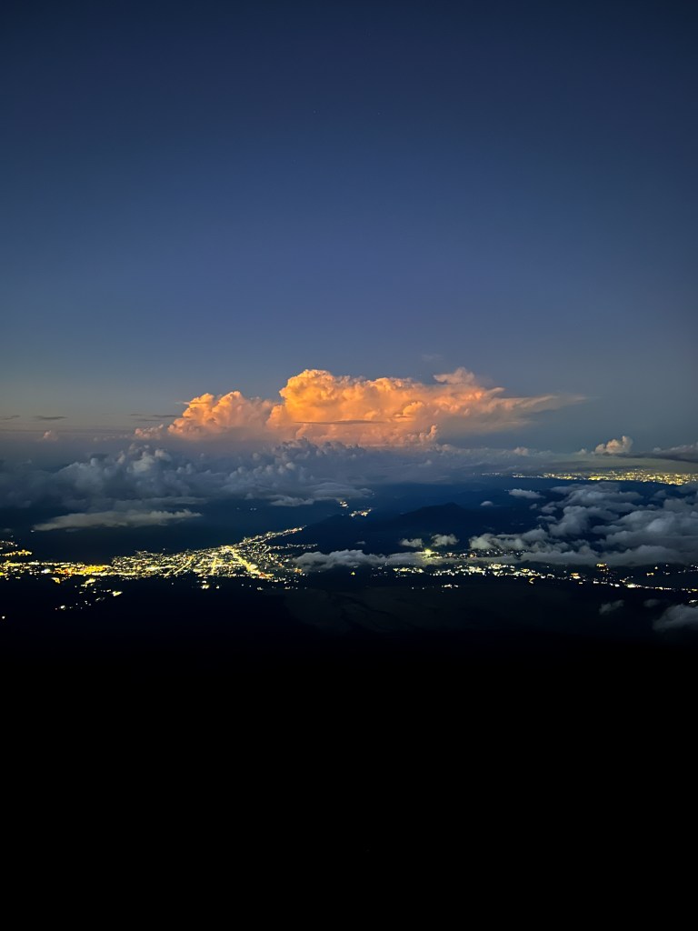After dinner we went back outside to check out the view. The sun had fallen behind the mountain (behind us) but it wasn’t dark yet. We had the most amazing view of the land below, with the shadow of Mount Fuji hovering over it intensely. There was a climbing guide in the same area we were sitting and he mentioned that in the roughly 20 times he’d climbed Fuji this season, he hadn’t seen the shadow of the mountain with this view until today (the last day of the climbing season). So we were really lucky to have such excellent weather. Later in the night as it became darker, the cities below lit up with twinkling lights and you could even see Tokyo far off in the distance. In one area of clouds, there was a lightning storm that you could see brewing. It really was an excellent evening.