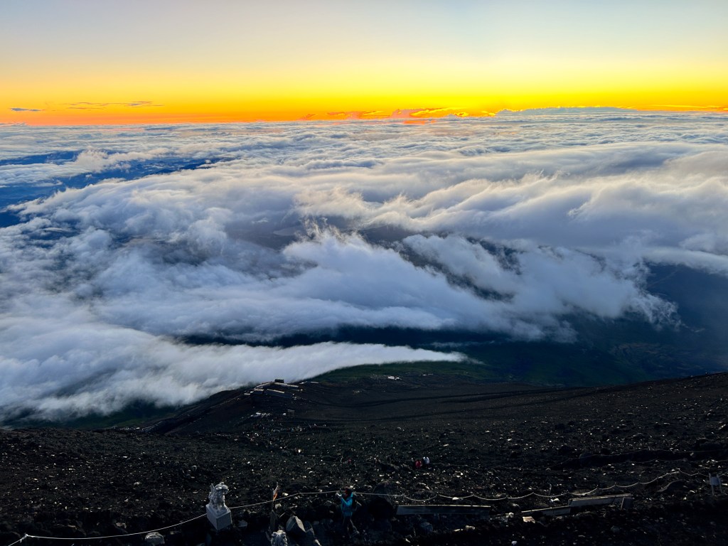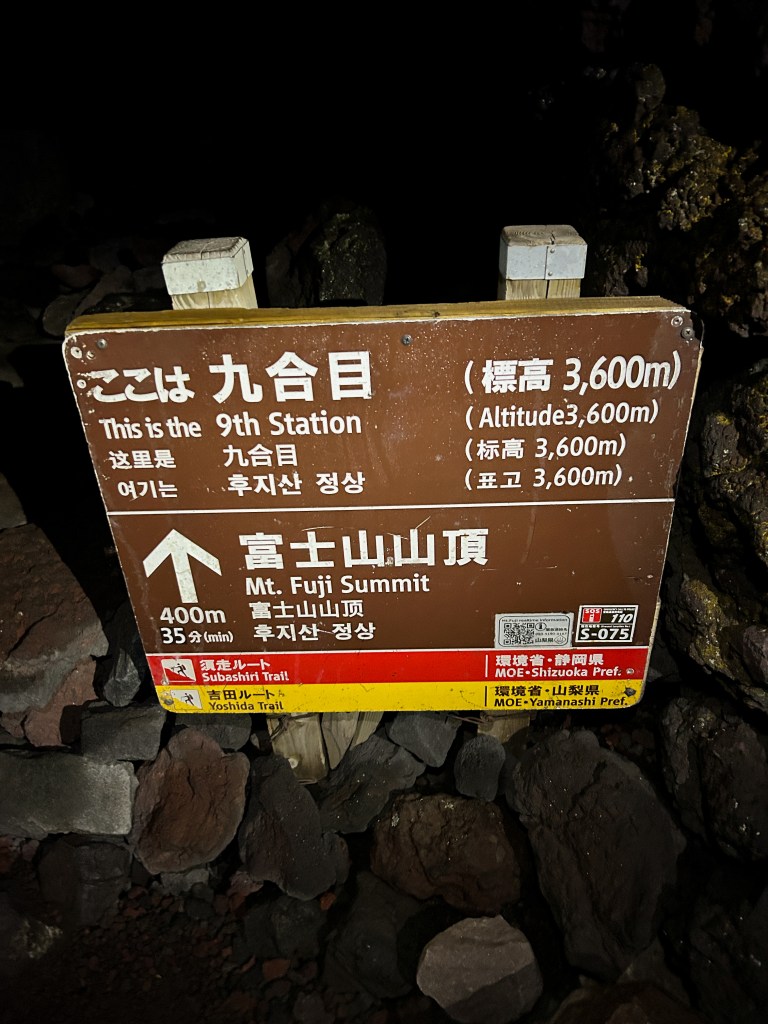 Immediately, there were people in front of and behind us with no gap in between. There was a solid line of people with headlamps slowly zig zagging all the way up the mountain. We moved incredibly slow so there was no need to take any breaks. You have to be really careful because in addition to the rocky and increasingly steep terrain, a lot of people use hiking poles but have no sense of the people around them. I kept my distance between the people in front of me and still cut it close to being poked in the face with a hiking pole. The distance to the summit from Station 8 isn’t that far, and in an ideal setting wouldn’t take very long. But the bumper to bumper traffic ensured that it took an hour and forty minutes. After seeing the craziness of the Yoshida trail, I was so happy that I chose to take the quiet Subashiri trail on my climb.