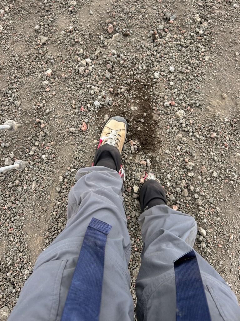 From the new Station 7 almost all the way down to Station 5 is a separate descent trail. And this is the second worst section of the entire trail, in my opinion. The volcanic sand became deeper and steeper. This is where our gaiters came in handy because the sand was above the top of my boots at points. With the foggy wet weather, you couldn’t see more than 20 feet in front of you. There are no mountain huts and no signs along the way telling you the distance or time to the bottom, only signs stating that you are on the Subashiri trail. The sand is so deep that you basically have to semi-run down while digging your heels in the sand each step so as not to fall forward. It was almost like skiing but in sand instead of snow. And mixed in the deep sand are large rocks that you will jam your toes into if you don’t watch where you’re stepping very carefully.