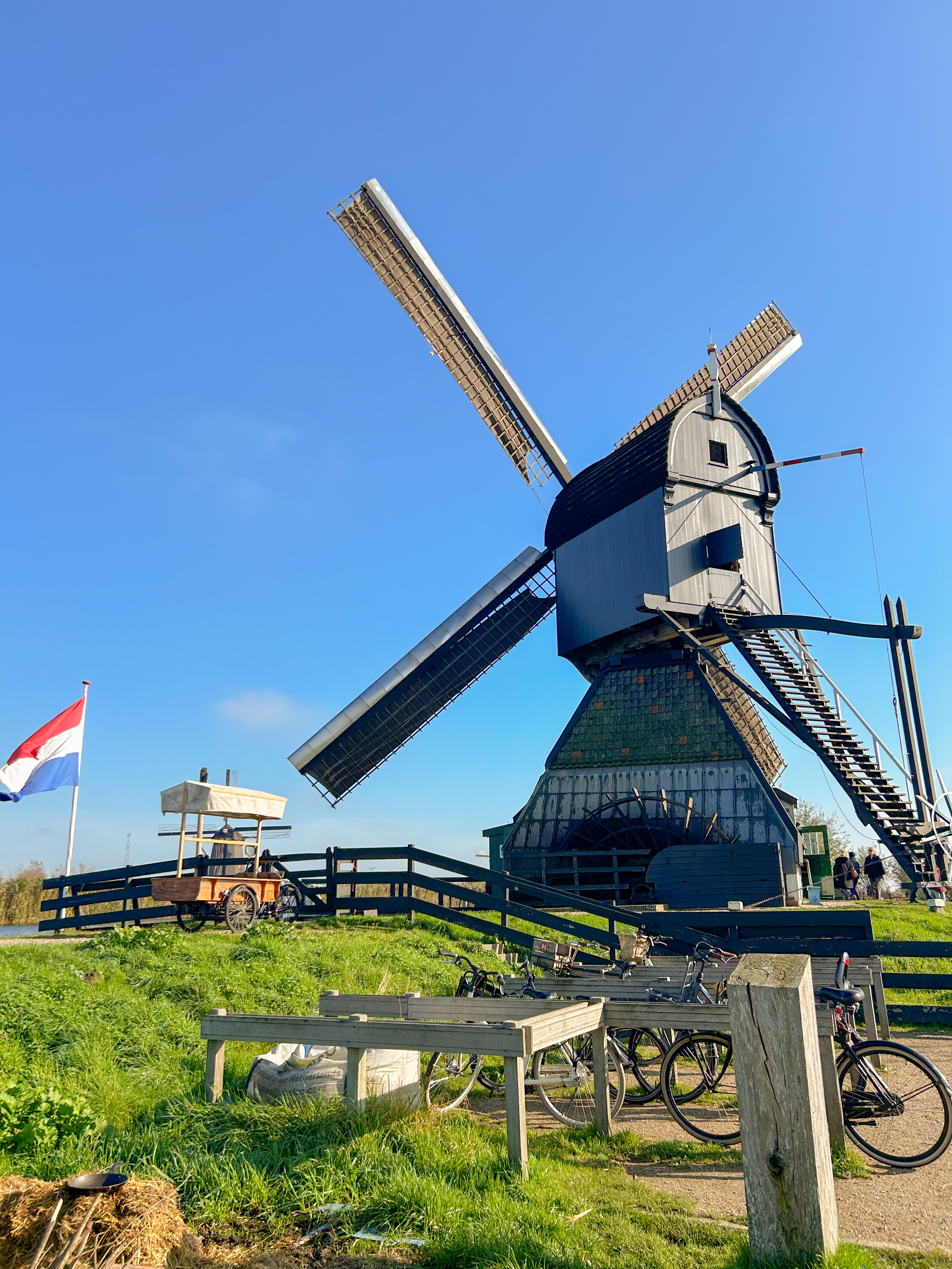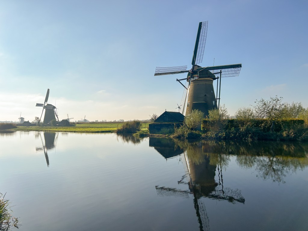 This really is a matter of personal preference and circumstances. If you’re short on time, then maybe taking the 30 minute boat tour (included in your ticket) would be your best option. If you want the traditional Dutch experience, then why not try renting a bike? When I visited, I opted to walk between the windmills. The path is well maintained, and isn’t too far of a distance. I also arrived early in the morning and didn’t want to wait for the bike rental shop to open. I really enjoyed the calm waterways and ability to stop wherever we wanted without worrying about where to put a bike.